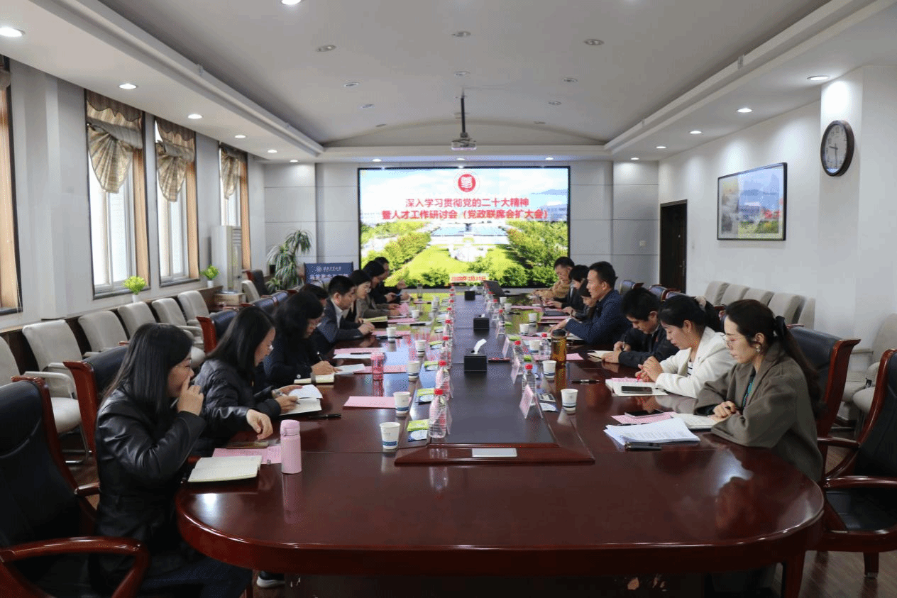 3月31日上午,冰球突破豪华版官方网站学习贯彻党的二十大精神暨人才工作研讨会(党政联席会扩大会)在冰球突破豪华版官方网站楼208会议室召开,学校党委教师工作部部长、人事处处长、高层次人才办公室主任唐玉生,人事处规划与评价研究办公室主任张敏乔,学院领导班子全体成员,各系主任、支部书记、教学主任等出席了会议。会议由学院党委副书记(主持工作)蒲传新主持。