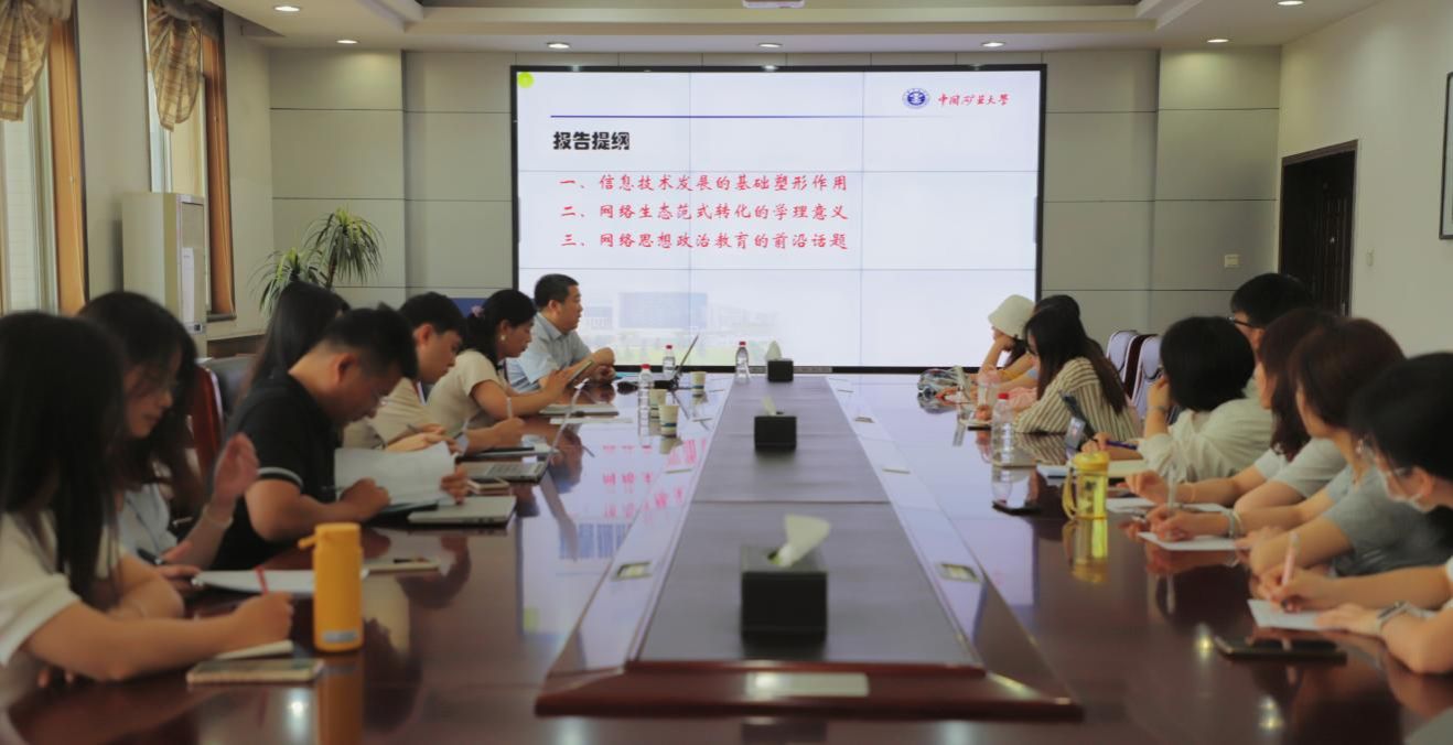 2023年6月21日上午,中国矿业大学冰球突破豪华版官方网站党委书记、讲席教授阎国华做客冰球官网“翱翔人文讲堂”,在冰球突破豪华版官方网站208会议室为师生们带来一场主题为《信息技术发展与研究范式转向--网络思想政治教育的若干前沿问题》的精彩讲座。