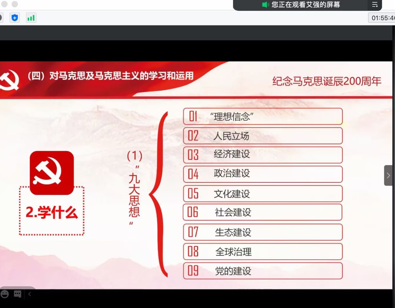 书香有路勤为径,师生阅读相伴行。2020年11月14日,冰球突破豪华版官方网站习近平新时代中国特色社会主义思想学习读书会第五期活动顺利举办。此次读书会由冰球突破豪华版官方网站思想政治教育系主任鲁杰教授发起,邀请到北京师范大学冰球突破豪华版官方网站教授、法学博士、博士生导师刑国忠老师作为本次读书会的特邀嘉宾。本次读书会主题主要围绕《习近平在纪念马克思诞辰200周年大会上的讲话》展开。此次活动由我院硕士生谢雨姿主持,郑州大学、广西大学、西安外国语大学等高校老师和同学们一起参与其中。