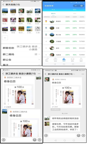 冰球突破豪华版官方网站工会积极响应陕西省总工会等部门联合开展的“我要上全运,奋进小康路”健步走活动的号召,第一时间在全院范围内进行了广泛的宣传和动员,精心组织了一支15位成员的参赛队,并建立了健步走微信群,参赛队员们线上分享劳模故事和健身经验,线下开展形式多样的体育比赛和锻炼活动,在浓厚的健身氛围下,参赛队员们你争我赶、互相提醒、互相监督,形成了一股健身热潮。