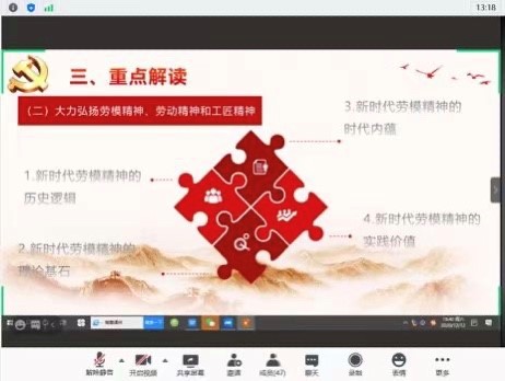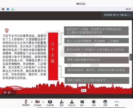 习近平总书记强调,社会主义是干出来的,新时代是奋斗出来。劳动模范是民族的精英、人民的楷模,是共和国的功臣。我国是人民当家作主的社会主义国家,党和国家始终坚持全心全意依靠工人阶级方针,始终高度重视工人阶级和广大劳动群众在党和国家事业发展中的重要地位,始终高度重视发挥劳动模范和先进工作者的重要作用。为了深入学习习近平总书记在全国劳动模范和先进工作者表彰大会上的重要讲话精神,2020年12月12日,冰球突破豪华版官方网站习近平新时代中国特色社会主义思想学习读书会第七期活动主题重点围绕《习近平在全国劳动模范和先进工作者表彰大会上的重要讲话》进行展开。此次活动由我院硕士生谢雨姿主持,中央民族大学冰球突破豪华版官方网站教授、学科点主任、研究生导师刘树宏老师,冰球突破豪华版官方网站博士生导师鲁杰教授作为对话教师应邀参加。