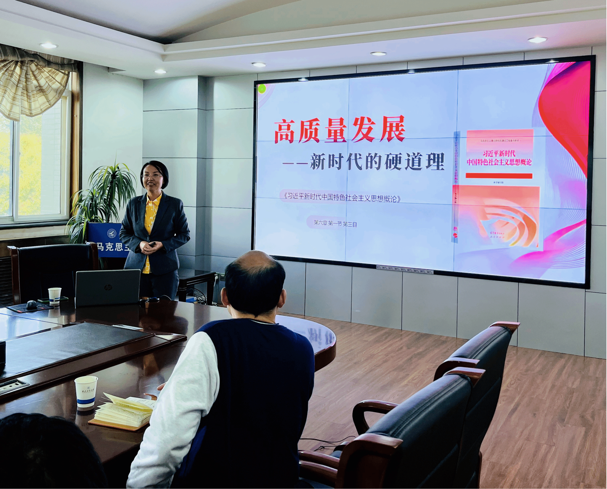 首先,由张淑华老师简要介绍本科评估整改的工作、介绍课程评估的工作以及动员大家积极参报课程建设项目。张老师着重强调了将 “总师育人文化”融入思政课堂的重要性,并鼓励大家积极申报课程项目,突出特色;动员各位思政课教师积极推进“大思政课”建设,打造学生喜闻乐见的第二课堂。