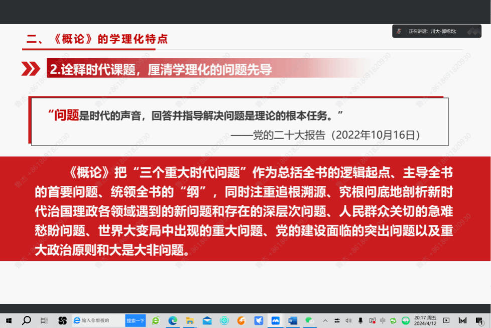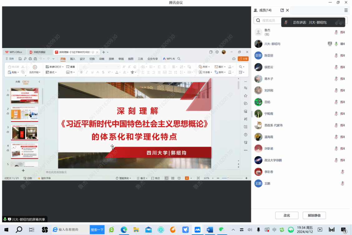 2024年4月12日晚19:30,冰球突破豪华版官方网站研究生公共课《习近平新时代中国特色社会主义思想专题研究》课程组,邀请四川大学郭绍均副教授进行线上讲座,指导课程集体备课。讲座由课程负责人鲁杰教授主持,课程组全体教师及部分学院教师参加备课。