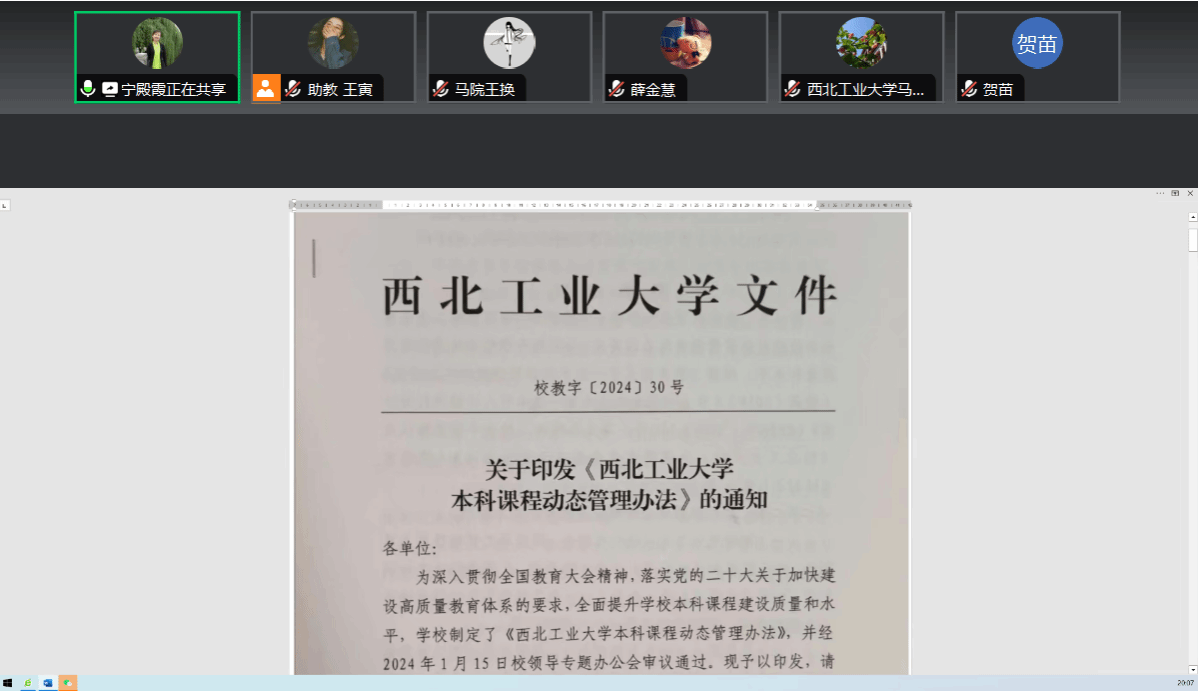 随后,《概论》课教研室主任宁殿霞副教授就关于印发《冰球突破豪华版官方网站本科课程动态管理办法》的文件与各任课老师围绕总则、动态管理对象、课程建设与开设管理、课程过程管理、预警与退出机制等内容进行集体学习。本次学习有利于任课老师们深入贯彻全国教育大会精神,落实党的二十大报告关于加快建设高质量教育体系的要求,全面提升学校本科课程建设质量和水平。