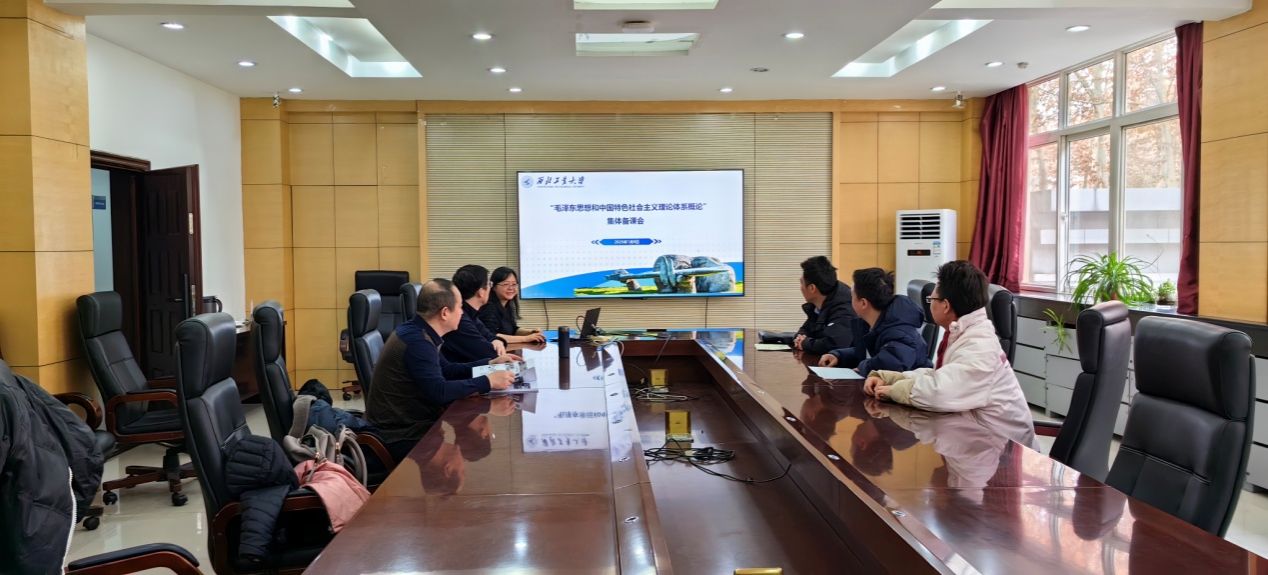 为进一步落实将“总师育人文化”在思政课建设中走深走实,促进学院高质量内涵式发展,2025年1月9日,毛泽东思想和中国特色社会主义理论体系概论课程组在友谊校区毅字楼218,进行2025年第一次集体备课会。备课会由马克思主义中国化研究系教学主任华艳君主持,会议主题为数字技术赋能思政课建设交流研讨,全体专职教师参加。