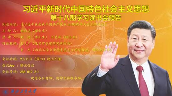 百年征程波澜壮阔,百年大党风华正茂。中国共产党从嘉兴南湖的小船上昂首迈步,在长征的雪山上艰难前行,在改革开放的春风中搏击风浪,在党中央带领下,为实现中华民族的伟大复兴而不懈奋斗!我们党创造了一个又一个举世瞩目的成就。通过此次读书会,让更多的青年学子明白了发展中国特色社会主义,既是我们必须不断推进的伟大事业,又是我们开创未来的根本保证。新时代青年要以实际行动贯彻落实习近平总书记重要讲话精神,始终坚持以人民为中心的发展理念,始终不渝履行自己的社会责任,为全面建成社会主义现代化强国贡献一份力量。