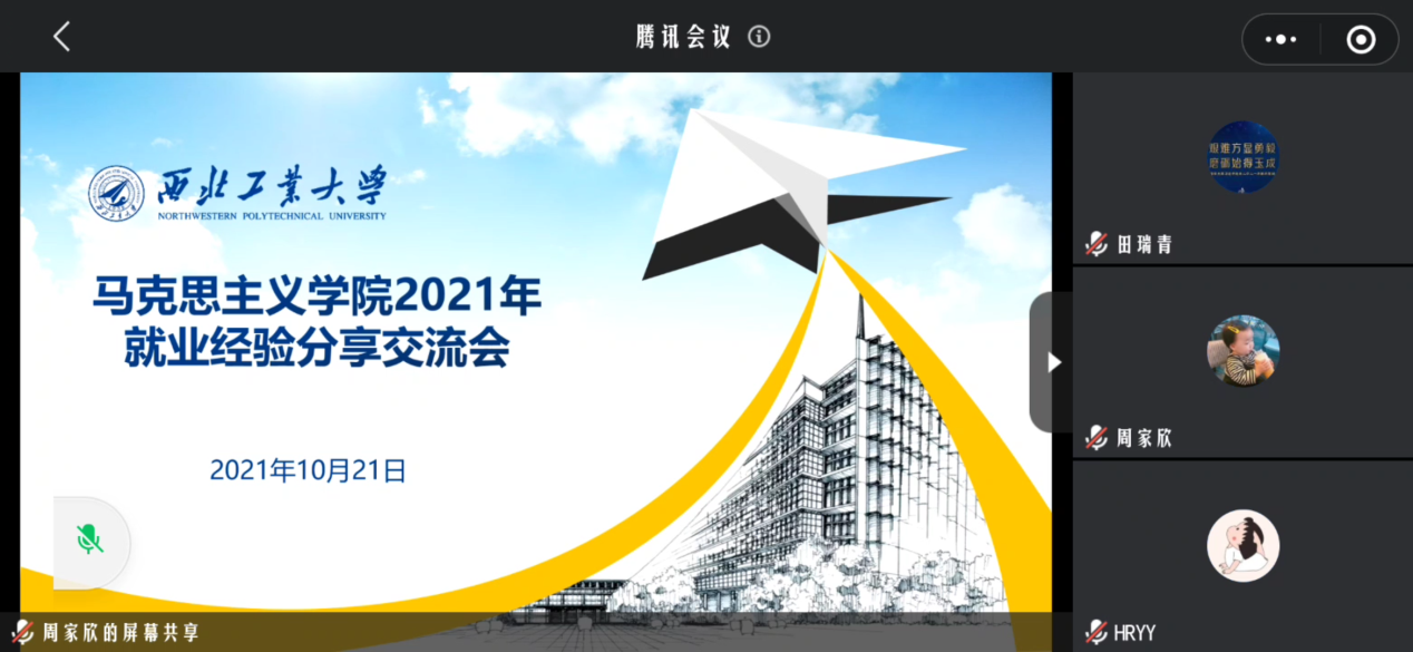 为帮助毕业生明晰就业前景,了解就业形势,明确求职方向,2021年10月21日,冰球突破豪华版官方网站就业经验分享交流会于腾讯会议线上举行。此次会议共邀请七位优秀毕业生分享求职经历,学院党委副书记李刚及70余名研究生共同参加。分享会由兼职辅导员周家欣主持。