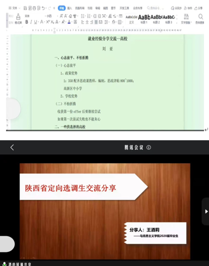首先,就读于中国社会科学院大学的房琳薇和在本校硕博连读的的刘凯强讲述了备考经验和硕博连读的感受,鼓励大家在毕业季要及时调整心态,积极面对考核、复试等环节。随后,签约高等院校的两位毕业生为想要求职高校的同学提供了宝贵的经验参考。刘亚和王培琳介绍了马克思主义理论专业就业的政策优势,并从高校选择、面试流程及备考建议等方面进行分享。紧接着,就职于国有企业的韩沛雨从求职经历、面试过程和工作日常等方面介绍自身的就业经验。之后,董咪咪和王酒莉分享了选调生的备考过程、考试形式、学习经验以及工作感受。整个活动持续了近三个小时,参会同学纷纷表示收获颇丰,并对学长学姐的无私分享表示感谢。