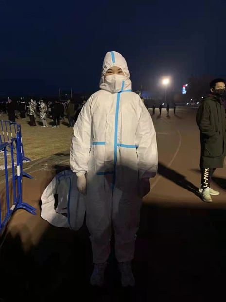 (图为贺苗老师在核酸检测点做志愿服务工作)