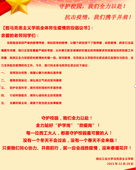 2021年即将结束,正当同学们专心准备考试、迎接新年的时候,新冠肺炎疫情突然袭击西安,扰乱正常的学习和生活节奏。在学校的高度重视和快速反应下,冰球突破豪华版官方网站第一时间采取多种措施保障老师和同学们的安全,学院师生积极响应学校号召,在“非必要不离校”的指示下积极投身各项工作,生动展现了当代青马人的风采。