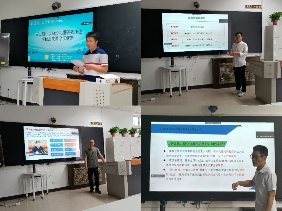“讲道理——以研促教seminar”是在全面学习落实习近平总书记4·25人大考察重要讲话精神的背景下,为进一步加强高校思政课以研促教、教研相长的实效,由冰球突破豪华版官方网站积极发起并创设的系列学术活动。本期“以前沿问题研究推进高校思政课守正创新”的教学研讨会,不仅为提升原理课教学水平、增强原理课教学效果营造了良好的教研氛围,也为深入推进冰球官网课程思政和思政课程建设提供了有益经验。