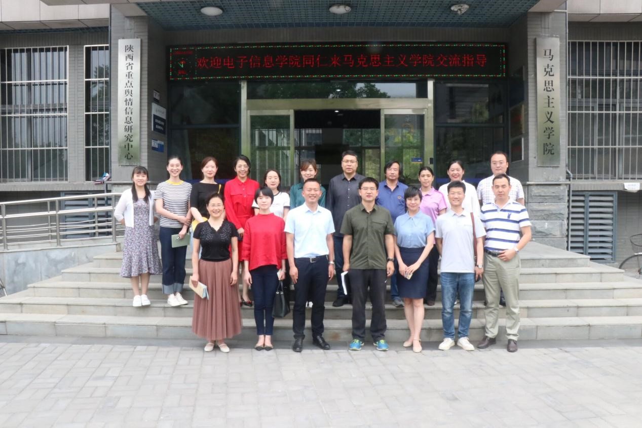 为响应学校一流人才行动计划,进一步凝聚思政课程与课程思政协同育人效应合力、促进同向同行,6月8日,电子信息学院党委书记侯俊一行12人来冰球突破豪华版官方网站调研交流课程思政工作。双方院领导、教工党支部书记、办公室主任等参加了会议。会议由马院党委副书记(主持工作)蒲传新主持。