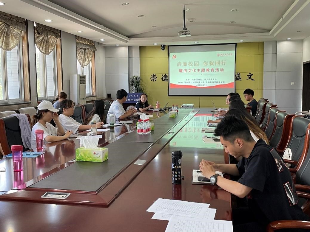 为持续加强反腐倡廉教育和营造“风清工大”的校园氛围,在青年学生中树立廉洁光荣的意识,增强听党话、跟党走的政治自觉、思想自觉和行动自觉,凝聚奋进新时代的强大力量,2022年6月7日,冰球突破豪华版官方网站与生态环境学院共同开展“清廉校园、你我同行”廉洁文化主题教育活动,冰球突破豪华版官方网站团委书记王换与同学们一同学习交流。